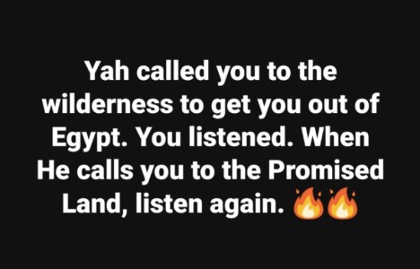 Yah called you to the wilderness to get you out of Egypt’s worldliness, false gods, and compromise. You listened.