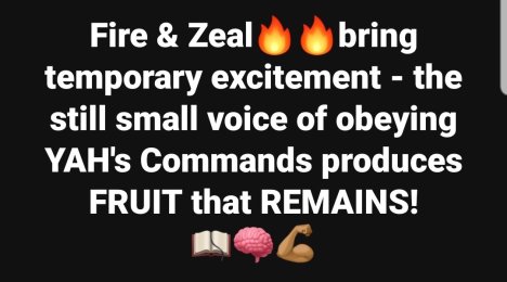 Fire & Zeal๐ฅ๐ฅbring temporary excitement – the still small voice of obeying YAH’s Commands produces FRUIT that REMAINS!