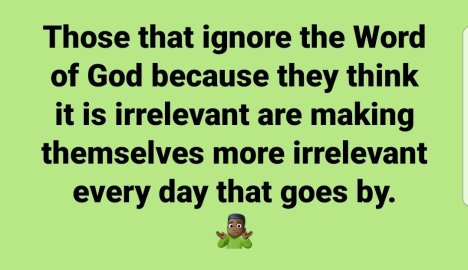 Those that ignore the Word of God because they think it is irrelevant are making themselves more irrelevant every day that goes by.