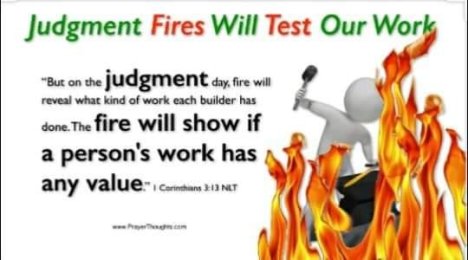 You loved God and believed in Him but you served God in your way instead of His way. All your Creative Conceits, self promotions, and worldly strategies didn’t stand in His testing fire… you barely made it in. Thankful, yet disappointed in yourself.