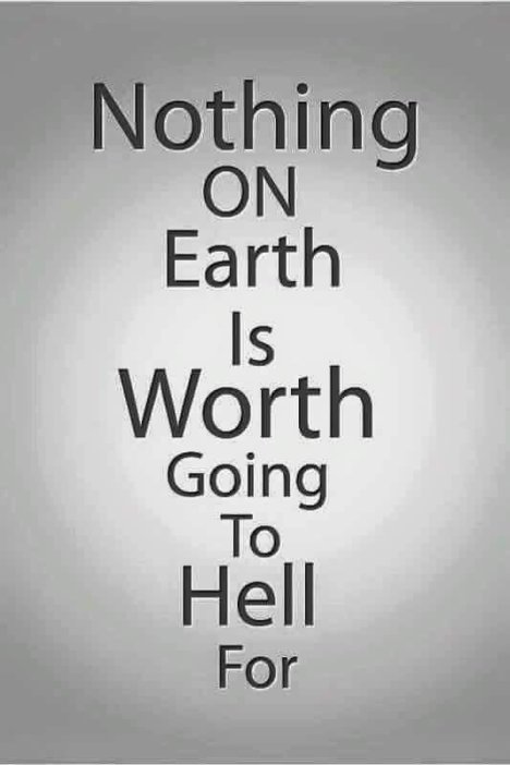 Nothing on this earth is worth going to hell for.