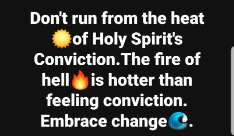 Don’t run from the heat☀️of Holy Spirit’s Conviction.The fire of hell🔥is hotter than feeling conviction. Embrace change🌊.
