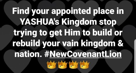 Find your appointed place in YASHUA’s Kingdom stop trying to get Him to build or rebuild your vain kingdom & nation. #NewCovenantLion
