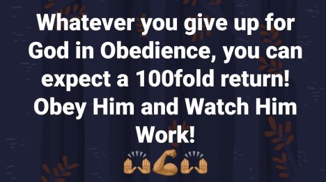 Whatever you give up for God in Obedience, you can expect a 100fold return!