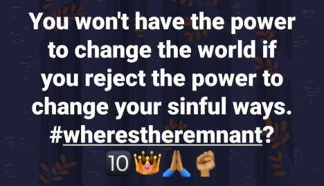 You won’t have the power to change the world if you reject the power to change your sinful ways. #wherestheremnant?