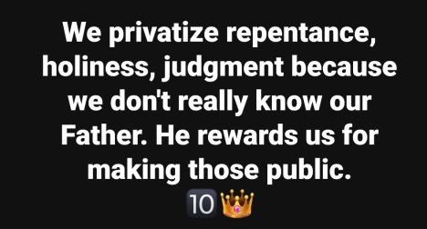 We privatize repentance, holiness, judgment, and the wisdom of God because we don’t have the leadership of our Father. He rewards us for putting those out in the open.