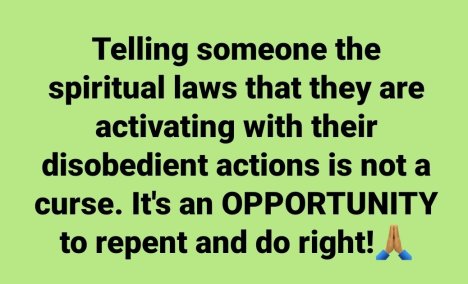 Telling someone the spiritual laws that they are activating with their disobedient actions is not a curse. It’s an OPPORTUNITY to repent and do right!🙏🏽