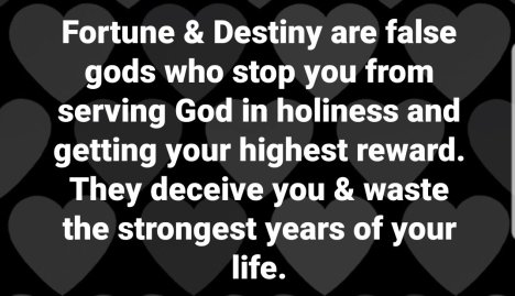 Fortune & Destiny are false gods who stop you from serving God in holiness and getting your highest reward. They deceive you & waste the strongest years of your life.