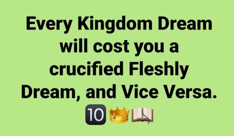 Every Kingdom Dream will cost you a crucified Fleshly Dream, and Vice Versa.