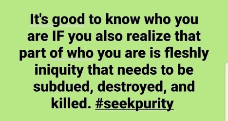 It’s good to know who you are IF you also realize that part of who you are is fleshly iniquity that needs to be subdued, destroyed, and killed. #seekpurity