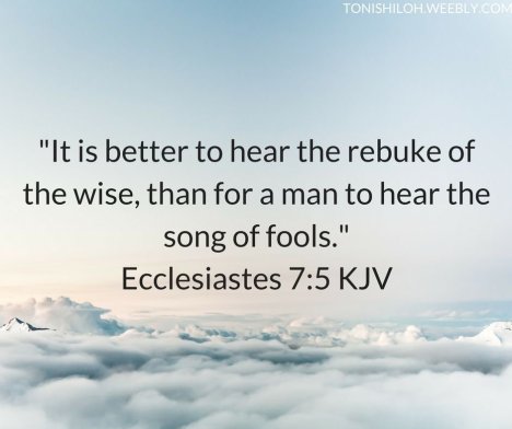 Ecclesiastes 7:5 It is better to hear the rebuke of the wise, than for a man to hear the song of fools.
