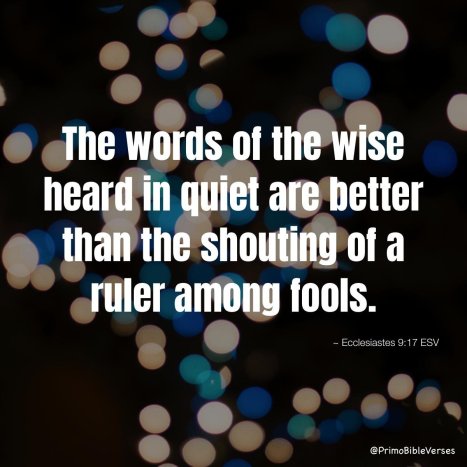 Ecclesiastes 9:17 The words of wise men are heard in quiet more than the cry of him that ruleth among fools.