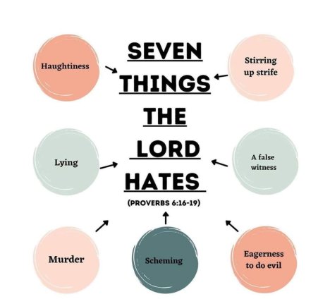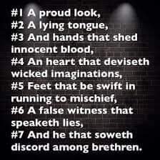 Proverbs 6:16 These six things doth the Lord hate: yea, seven are an abomination unto him: