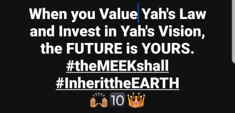 When you Value Yah’s Law and Invest in Yah’s Vision, the Future is YOURS. #theMEEKshall