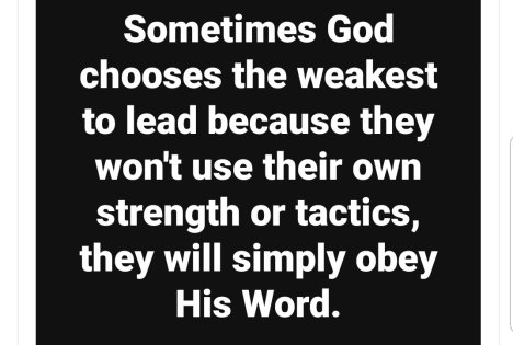 Sometimes God chooses the weakest to lead because they won’t use their own strength or tactics, they will simply obey His Word.