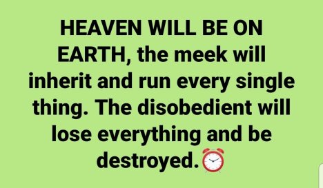 HEAVEN WILL BE ON EARTH, the meek will inherit and run every single thing. The disobedient will lose everything and be destroyed.⏰