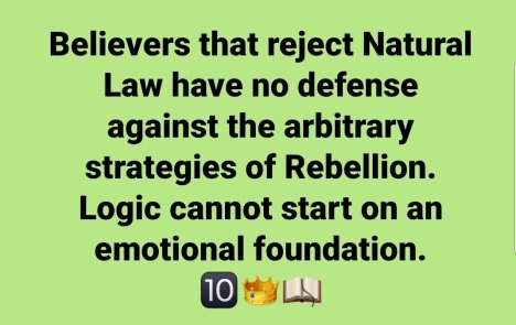Believers that reject Natural Law have no defense against the arbitrary strategies of Rebellion. Logic cannot start on an emotional foundation.