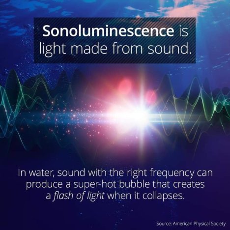 This phenomena of SONOLUMINESCENCE has been recreated on earth in an actual laboratory, not in a studio with camera tricks like the science fiction/NASA/Star Wars space hoaxes.